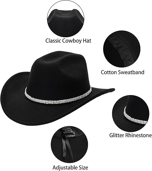 - High Quality - Our black cowboy hat for men and women are made of high-quality felt adorned with metal studs to give them an added fashionable touch.A comfortable fit made for a sturdy and great look.