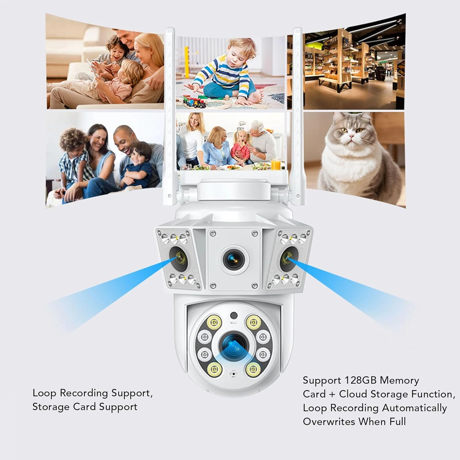 Loop Recording & Storage Options: Supports up to a 128GB microSD card (not included) and cloud storage. Automatic loop recording overwrites older footage when memory is full, ensuring continuous and efficient operation for homes, shops, and industrial spaces.