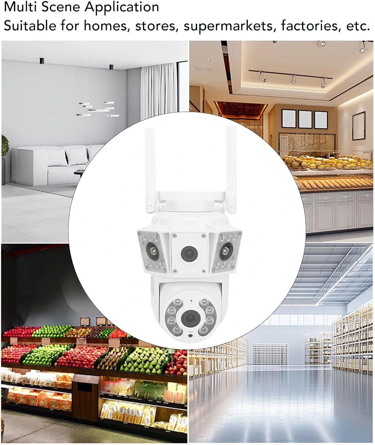 Full Panoramic Coverage: Built with a fixed lens and a rotating lens that supports 355° horizontal and 90° vertical rotation. This comprehensive design ensures full-range monitoring for homes, businesses, factories, and outdoor areas requiring reliable 360° surveillance.